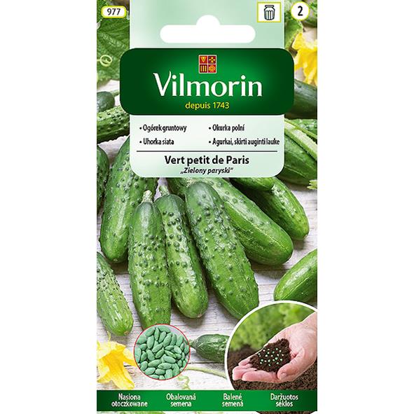 Ogórek zielony paryski otoczkowany to inaczej odmiana Vert petit de Paris, charakteryzująca się wczesnym i wydajnym plonowaniem, krótkimi, niewymagającymi obierania, słodkimi i kruchymi owocami, idealnymi do przetworów. Nasiona tej odmiany, są pokryte naturalną otoczką, ułatwiającą wysiew, zapewniającą równomierne wschody i chronią roślinę przed szkodnikami oraz chorobami. Dzięki naturalnej otoczce nasiona umożliwiają kiełkowanie nasion w szerokim zakresie warunków środowiskowych oraz ograniczając stosowanie pestycydów.