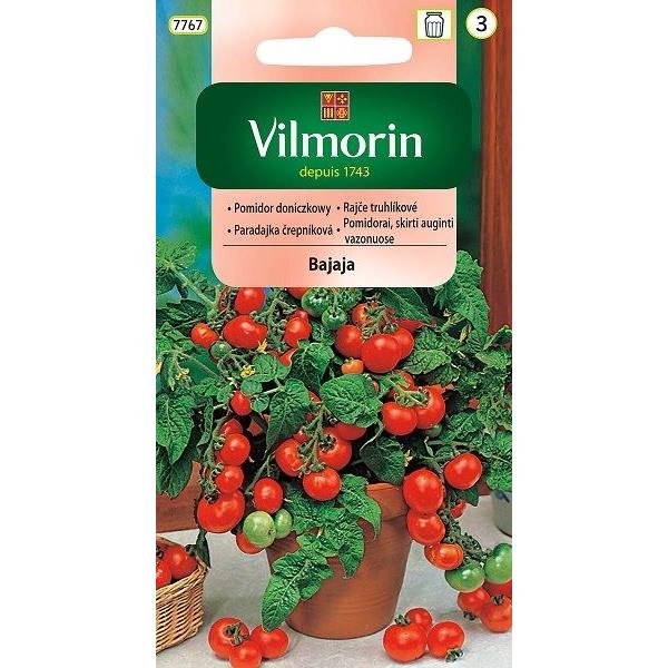 Pomidor koktajlowy Bajaja (Solanum lycopersicum) to popularna, karłowa odmiana średnio wczesna,której okres wegetacji wynosi około 63 dni. Przeznaczona do uprawy w pojemnikach, doniczkach na balkonach oraz w podwieszanych donicach. Roślina osiąga wysokość około 25-50 cm i charakteryzuje się zwartym pokrojem z przewieszającymi się pędami, co czyni ją oryginalną dekoracją balkonu. Pomidory tej odmiany nie wymagają podwiązywania ani skomplikowanego prowadzenia, co czyni je idealnymi dla początkujących ogrodników.