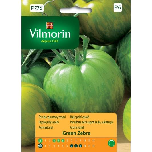 Green Zebra to niesamowity pomidor o żywo zielonym kolorze z charakterystycznymi ciemniejszymi paskami na skórce. W środku pomidor intensywnie zielony z aromatycznym miąższem. Ta odmiana jest idealna do uprawy w gruncie, a jej owoce średniej wielkości są bardzo dekoracyjne i smaczne.